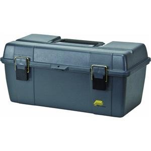 20''. Lift out tray, deep bottom. Sturdy, recessed, oversized handle and heavy duty latches. V groove lid design is convenient for bracing materials while sawing. Overall size: 20 1 4'' L. x 10 7 8'' W. x 9 1 8'' H. Gray.