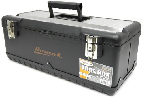 BLACK PAINTED STEEL TOOLBOXSteel body. Rugged plastic reinforced top and bottom. Durable plastic tray.